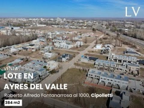 <span style="font-size: 18px; font-weight: bold;">VENTA | LOTE DE 384 m² EN BARRIO AYRES DEL VALLE, CIPOLLETTI, RIO NEGRO.</span><span style="font-weight: bold; font-size: 18px;"></span><div><span style="font-weight: bold;"><br></span></div><div><span style="font-weight: bold;">Se ubica en la calle Roberto Alfredo Fontanarrosa al 1000, entre Resistencia y Formosa, en un barrio en pleno desarrollo.</span></div><div><br></div><div><br></div><div><br></div><div>En una ubicación privilegiada, el barrio ya cuenta con los servicios de luz, agua, gas natural, y cordón cuneta. Se encuentra a metros de la ruta provincial 151, y a sólo 5 minutos de pleno centro de Cipolletti.</div><div><br></div><div><br></div><div><span style="font-weight: bold; text-decoration-line: underline;">Superficies:</span></div><div>Terreno 384 m2.</div><div>Frente 15 metros.</div><div>Fondo 25,60 metros.</div><div><br></div><div><br></div><div>Contactanos y coordina tu visita!</div><div><br></div><div><br></div><div><br></div><div><span style="font-style: italic; font-weight: bold;">Comercializa LV Servicios Inmobiliarios</span></div><div><span style="font-style: italic; font-weight: bold;"><br></span></div><div><span style="font-style: italic; font-weight: bold;">– Larravide Iñaki MAT 742 – CM&CPN –</span></div>